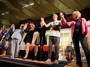 Nicht umsonst wurde gelacht, als die „Jungen Lüe ut Abschlau“ die Bühne bespielten. Horst Lichter höchst persönlich hatte sich auf den Weg ins Dorf gemacht, um mit seinen Händlern und dem Format „Bares fö Rares“ Geschäfte zu machen – mit Kunst, geadelter Unterwäsche und antikem Sportgerät.